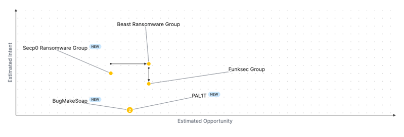 Over the past 7 days, we have been tracking the following intent and opportunity changes within our Threat Actor Landscape.