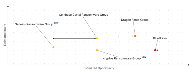 Over the past 7 days, we have been tracking the following intent and opportunity changes within our Threat Actor Landscape.
